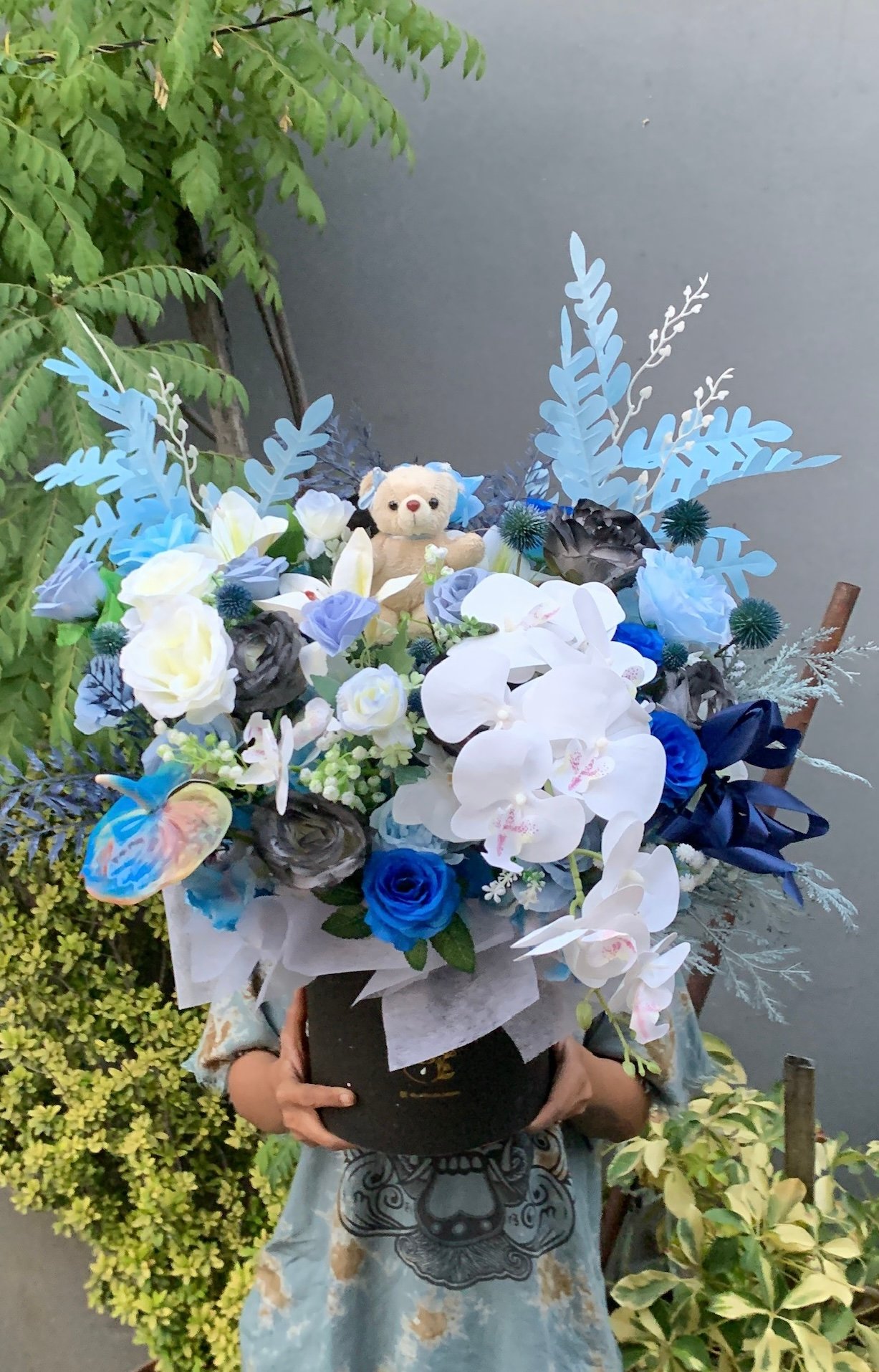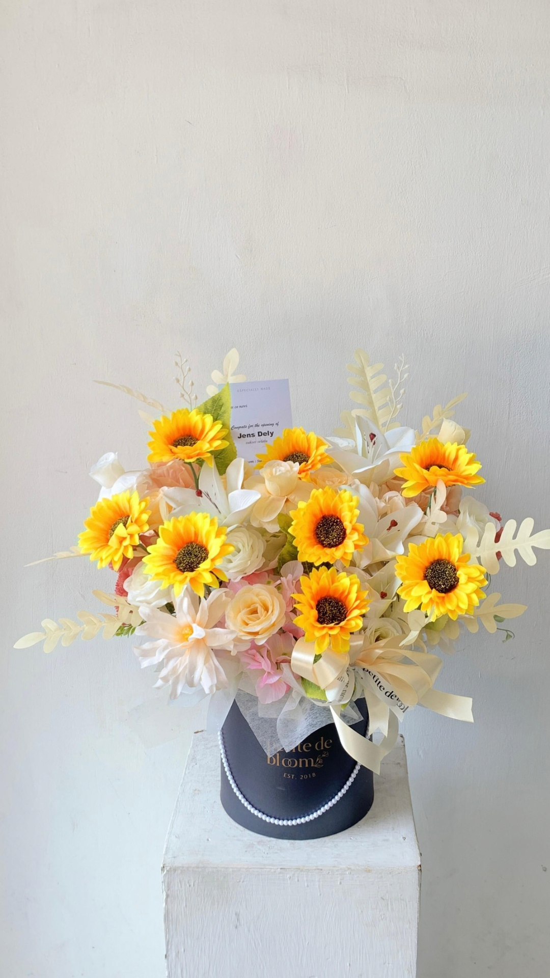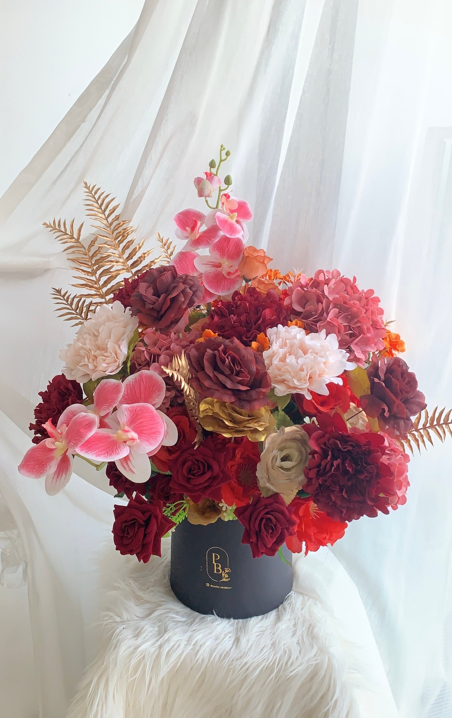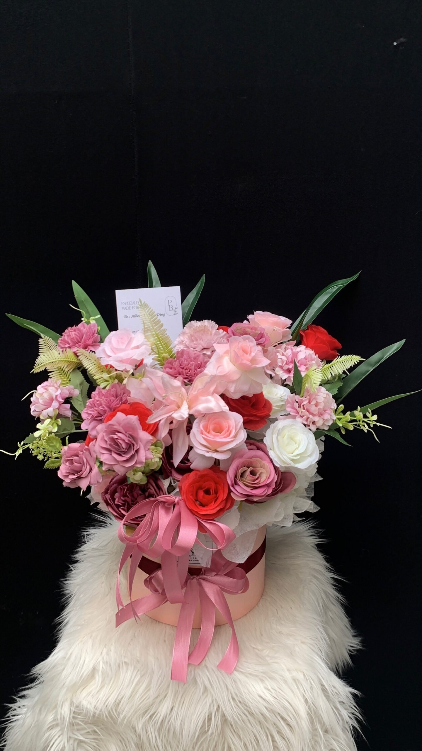 A perfect mix of fresh, vibrant blooms arranged in a 20cm bloom box — not too small, not too big, just beautifully balanced. Choose the flower size that suits your style: medium, medium-big, or big. You pick the vibe, and we’ll handle the rest with care and creativity! available in fresh flowers/ artificial flowers.( The photo is for reference only.)