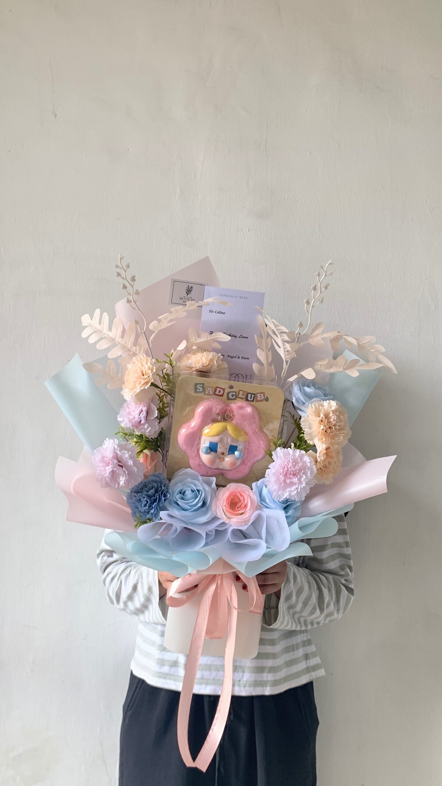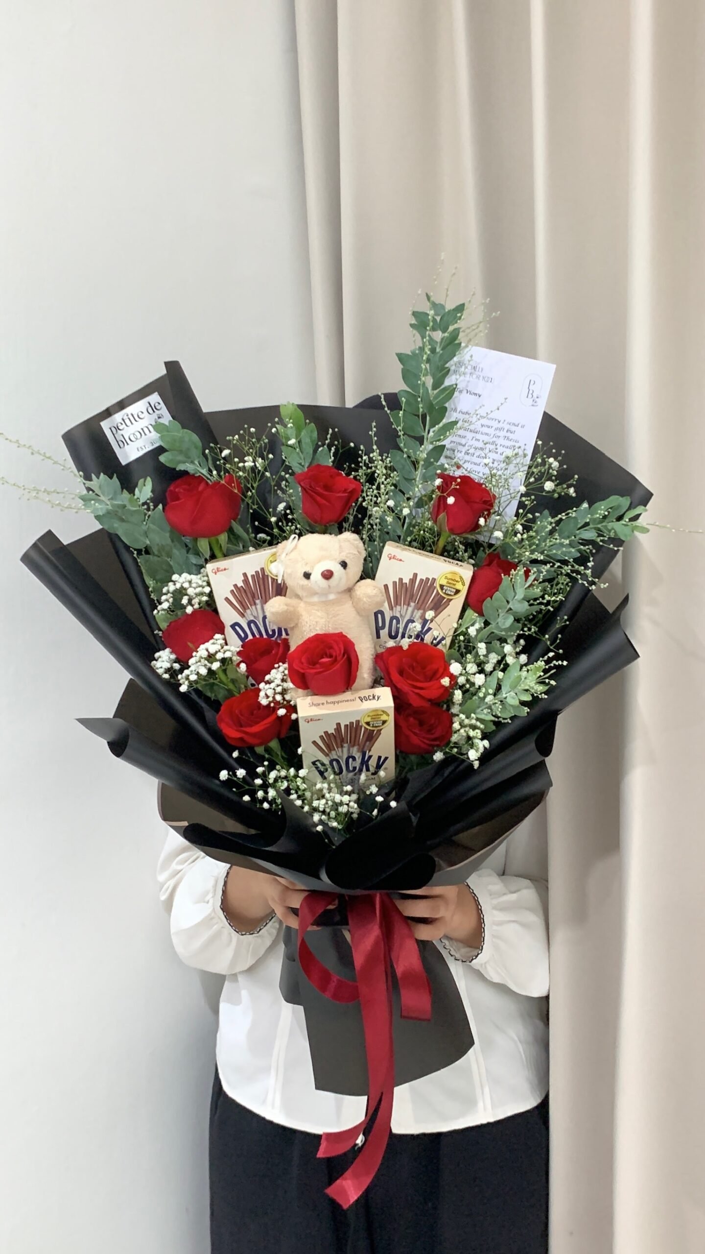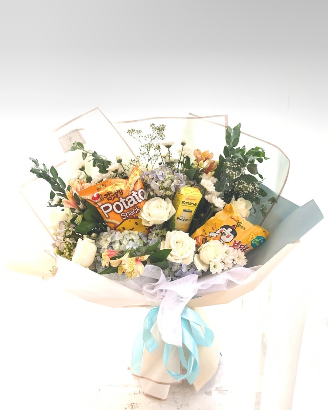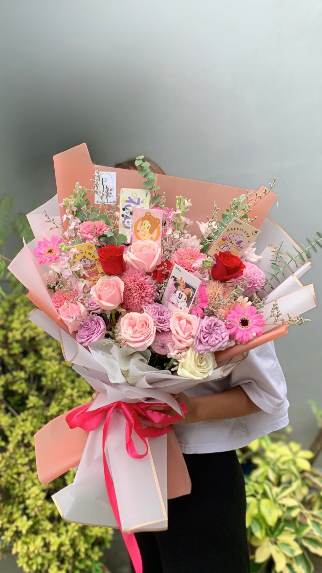 Create the perfect personalized gift with our Custom Bouquet & Gift Combo! Choose fresh or artificial flowers, tailored to your favorite colors and preferred size, paired with any small to medium gift — snacks, dolls, or anything special you want to include.