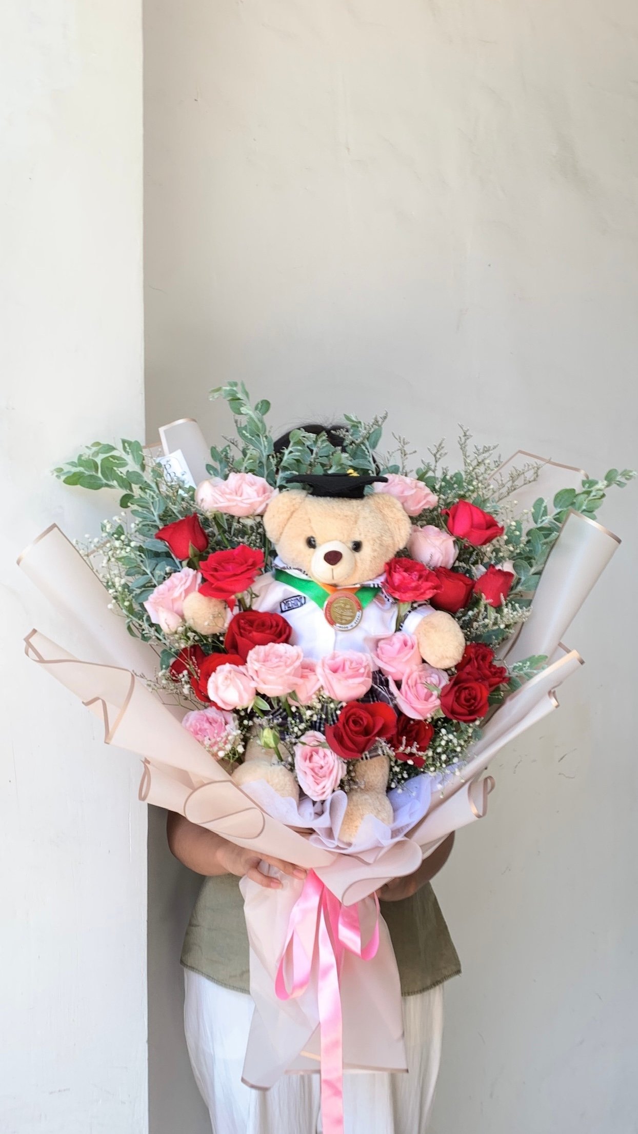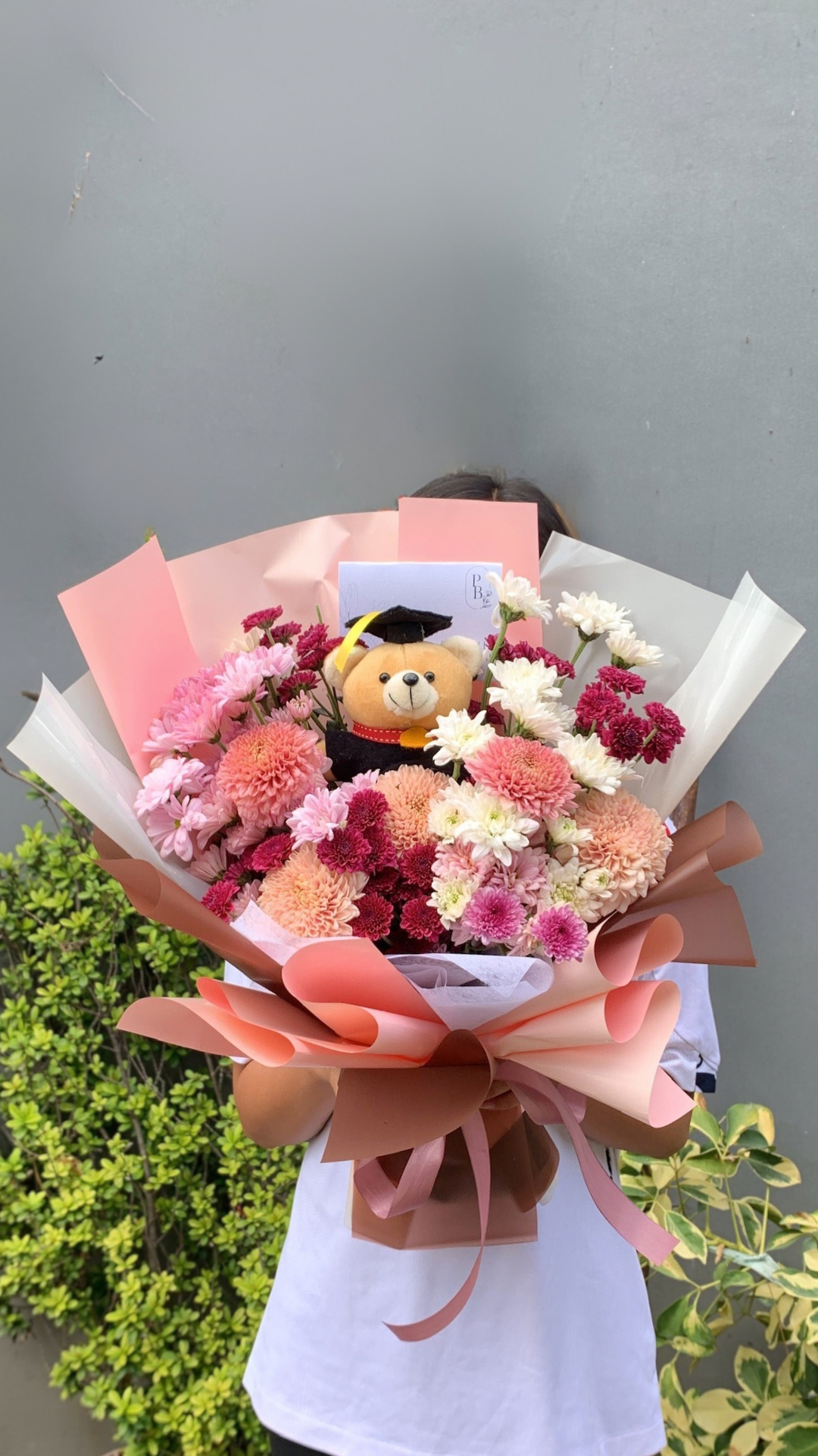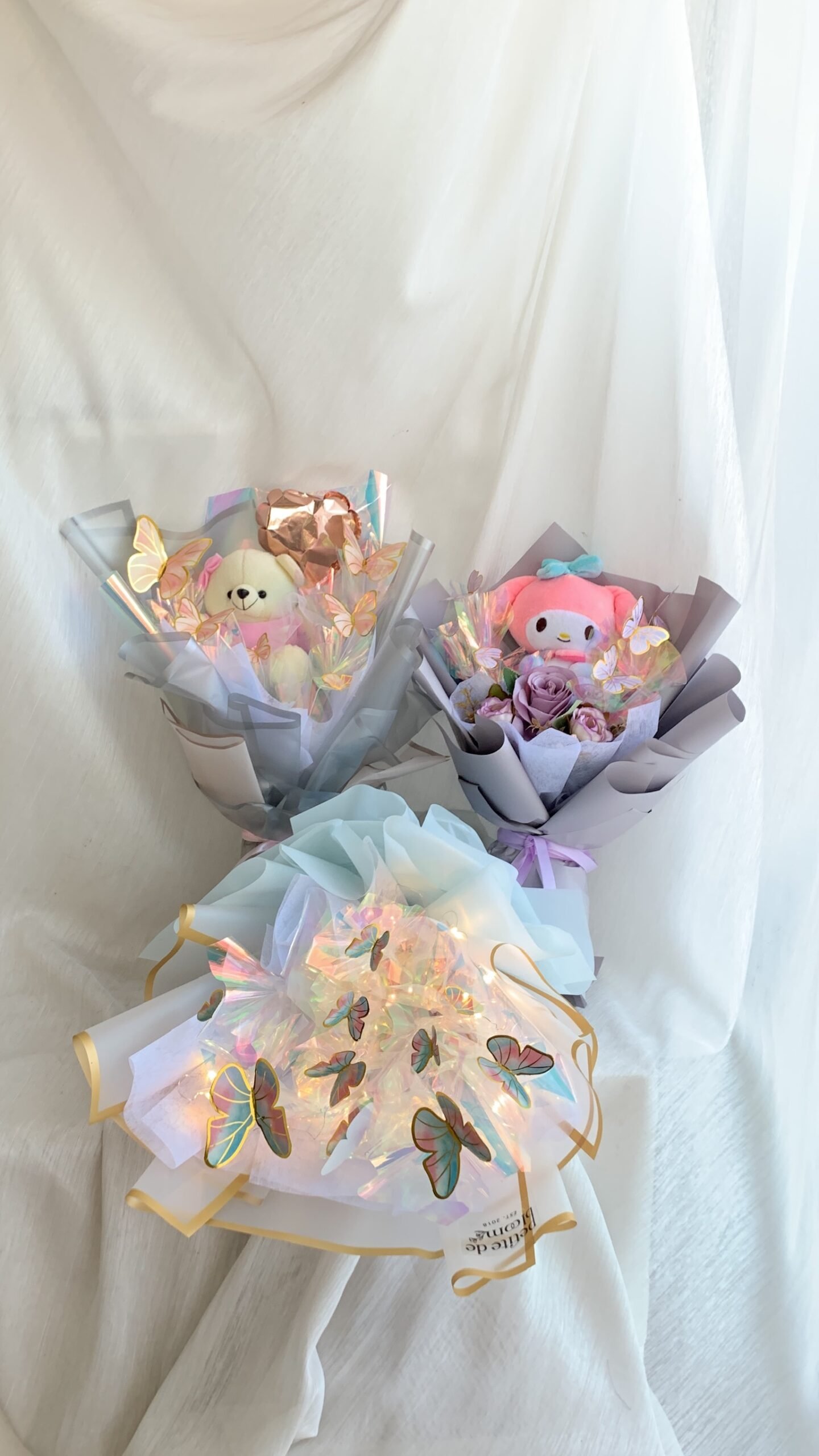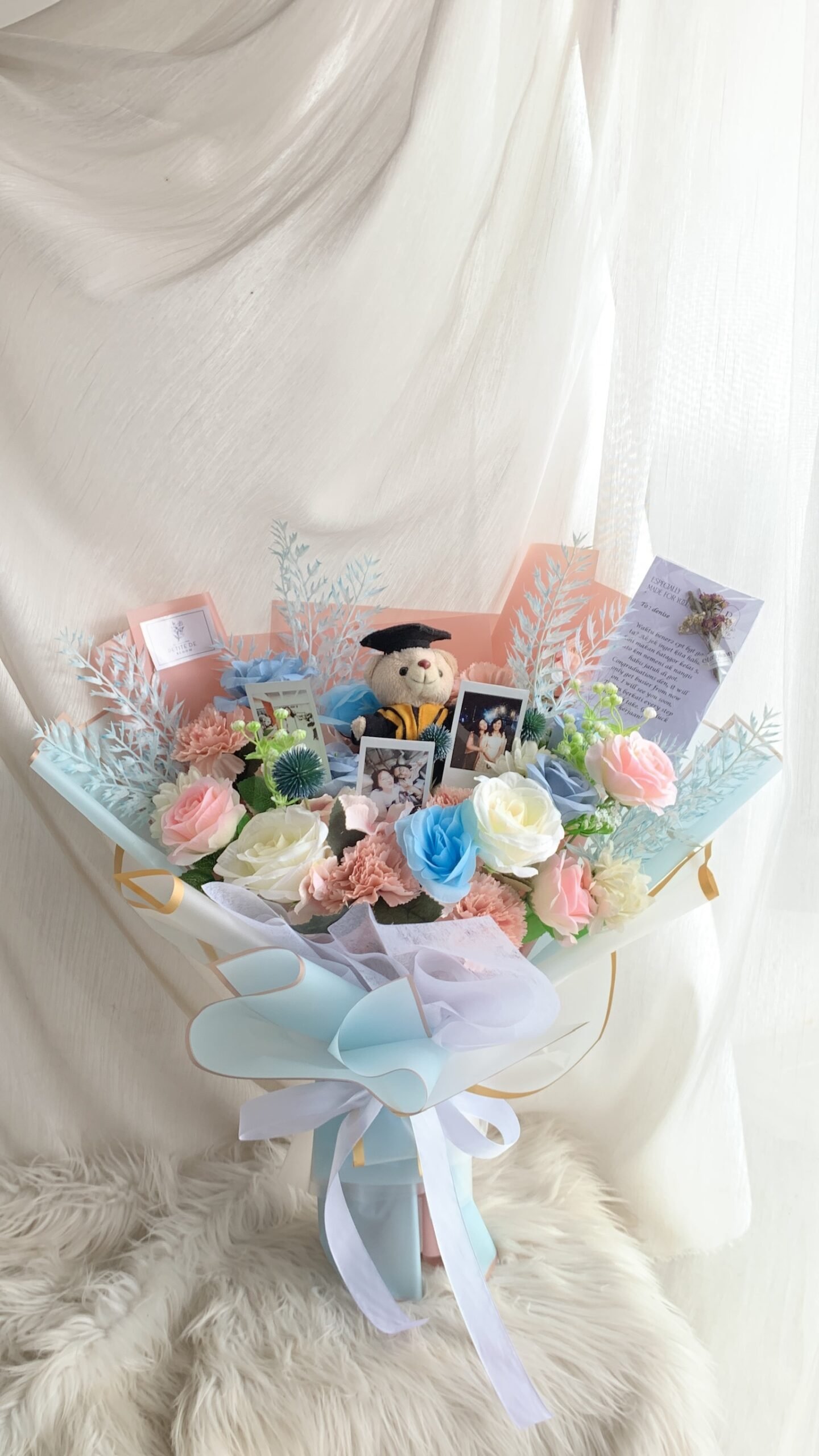 Create the perfect personalized gift with our Custom Bouquet & Gift Combo! Choose fresh or artificial flowers, tailored to your favorite colors and preferred size, paired with any small to medium gift — snacks, dolls, or anything special you want to include.
