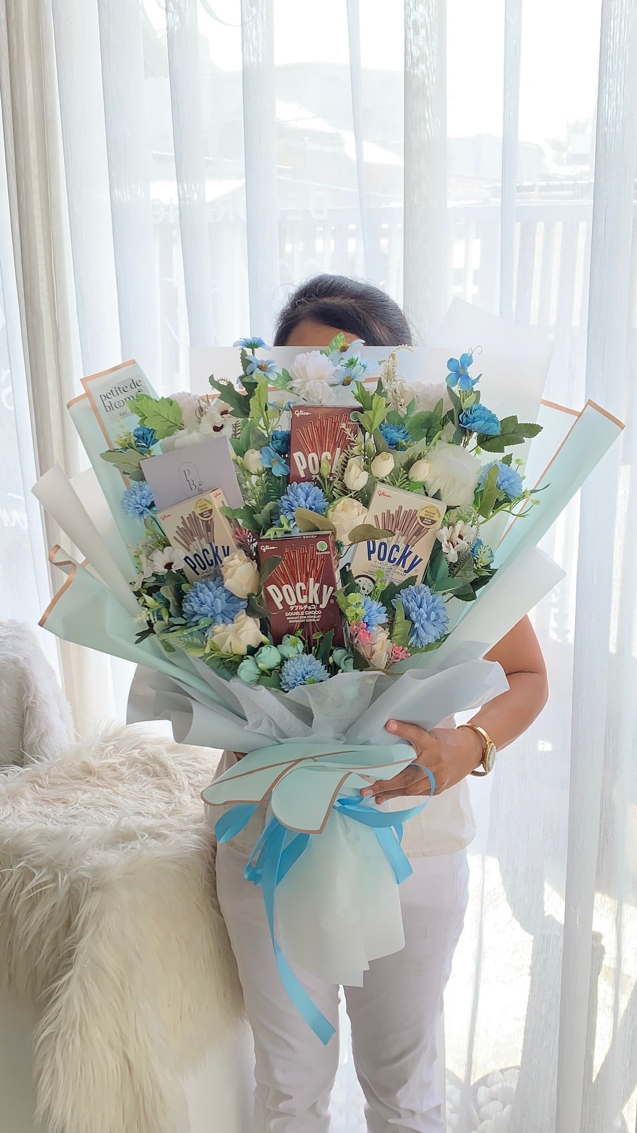 Whether it’s for a birthday, celebration, or just to surprise someone you love, this unique bouquet lets you mix and match flowers and gifts to make a truly one-of-a-kind present.
