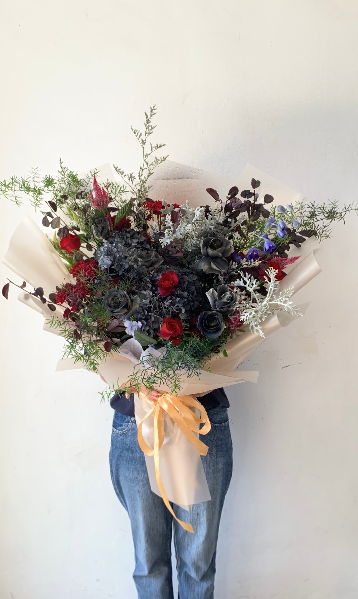 Our florists will design your arrangement with a random mix of semi-imported and local blooms, while maintaining your chosen color, style, and theme designed for him, more masculine touch, nothing feminim . Any substitutions of the secondary flower will be of equal or higher value.