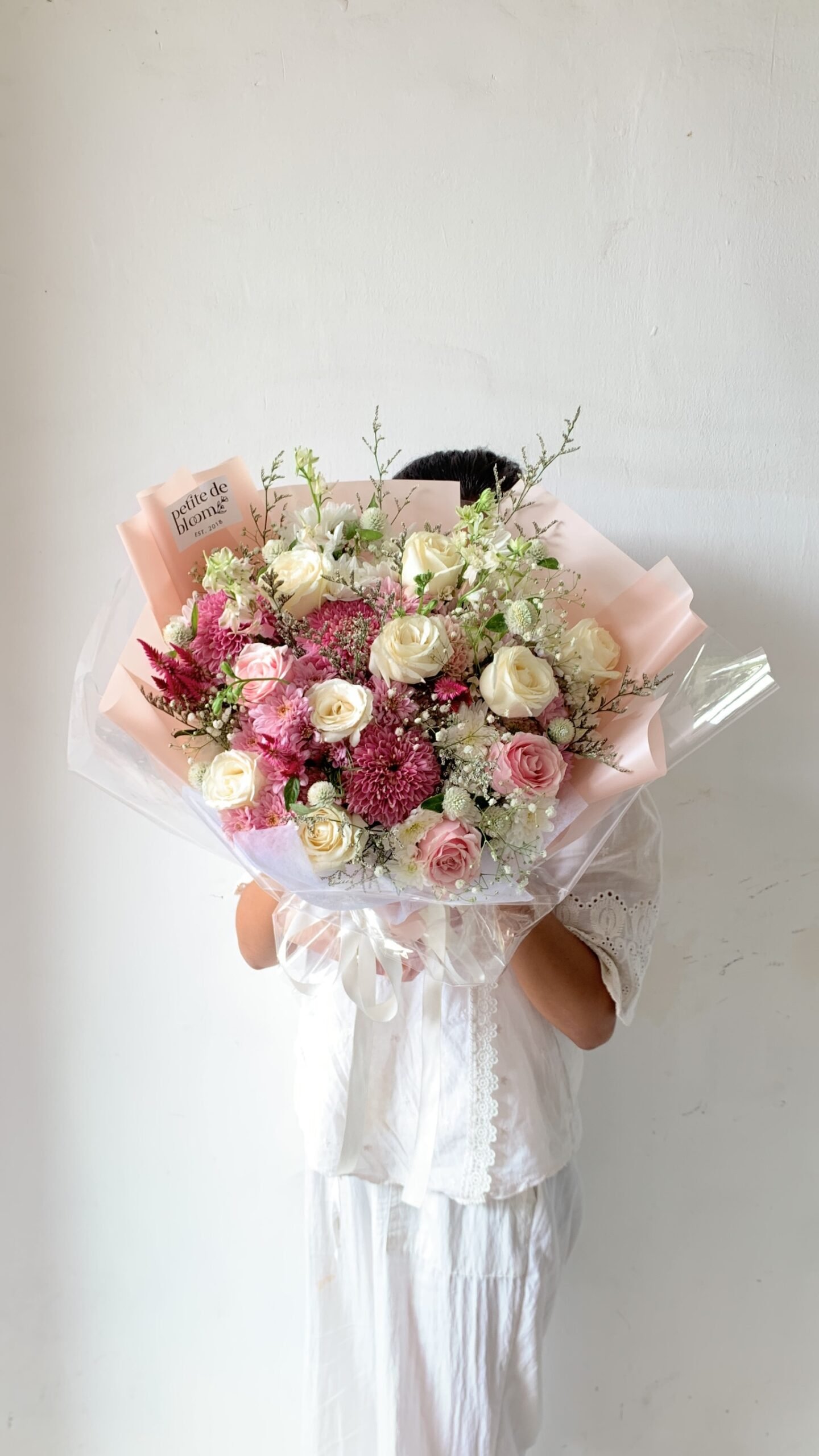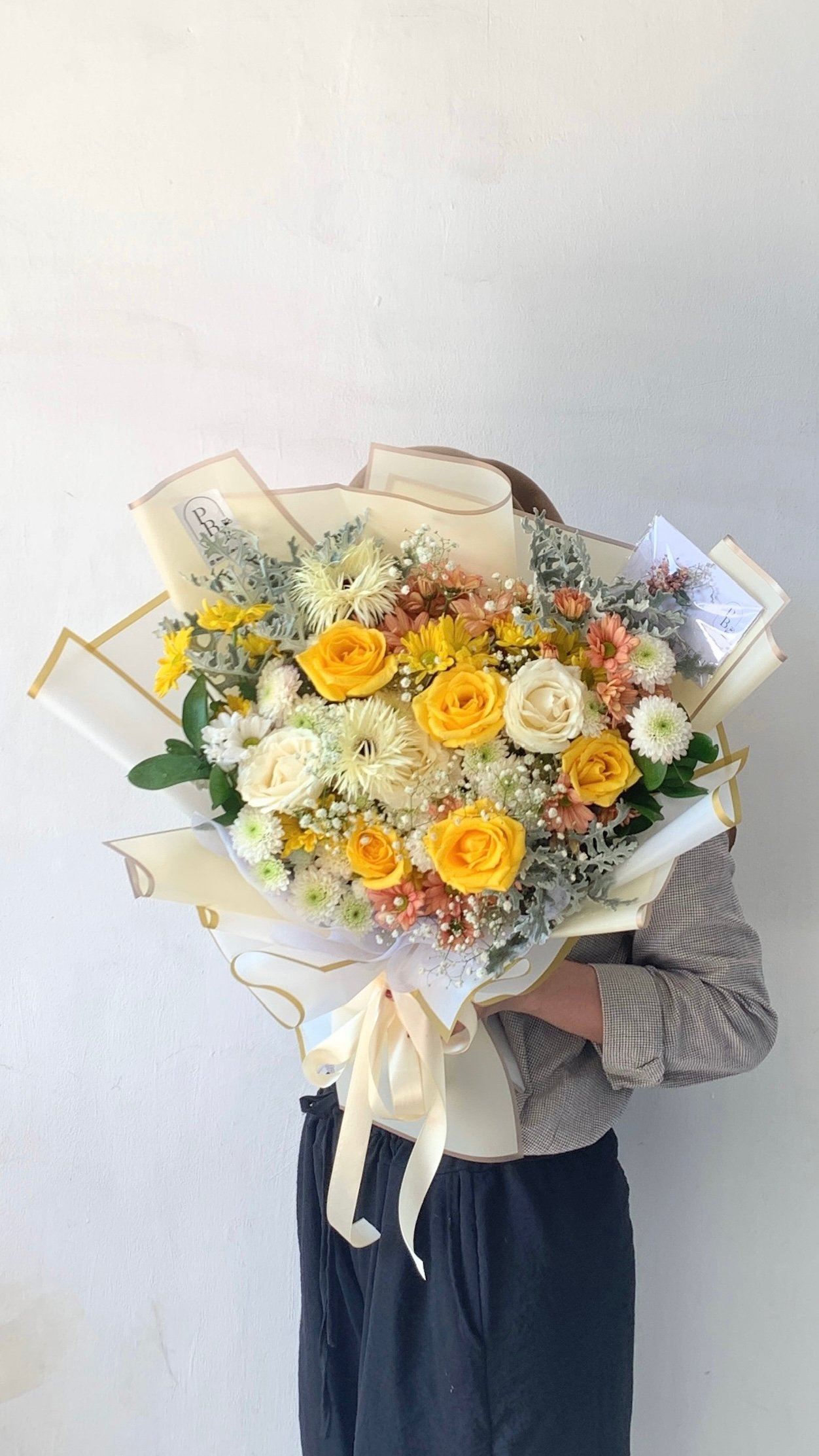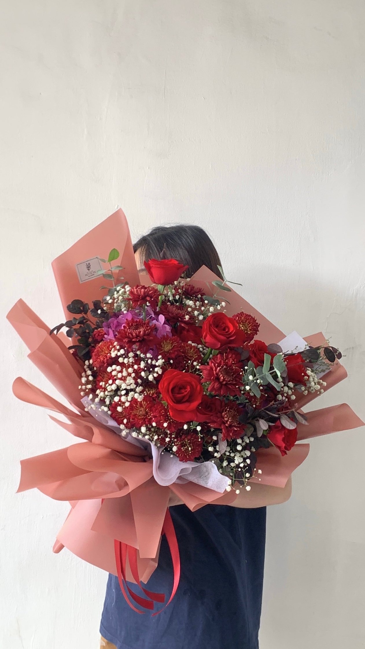 A perfectly balanced bouquet with just the right impact. Not too small, not too large — our medium-big arrangement is designed to make a lasting impression without being overwhelming. The photo is for reference only. You may choose your preferred color, and our expert florists will craft a unique arrangement using a mix of semi-imported and local blooms. While some secondary flowers may be substituted due to seasonal or market conditions, we always preserve your selected color, style, and theme. Substitutions will be of equal or greater value to ensure your bouquet remains beautiful and thoughtfully designed.
