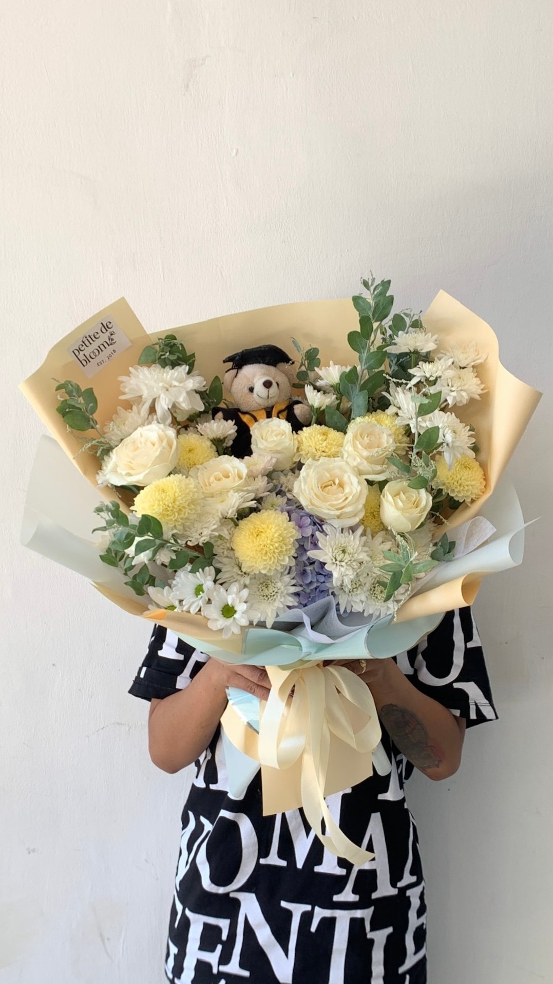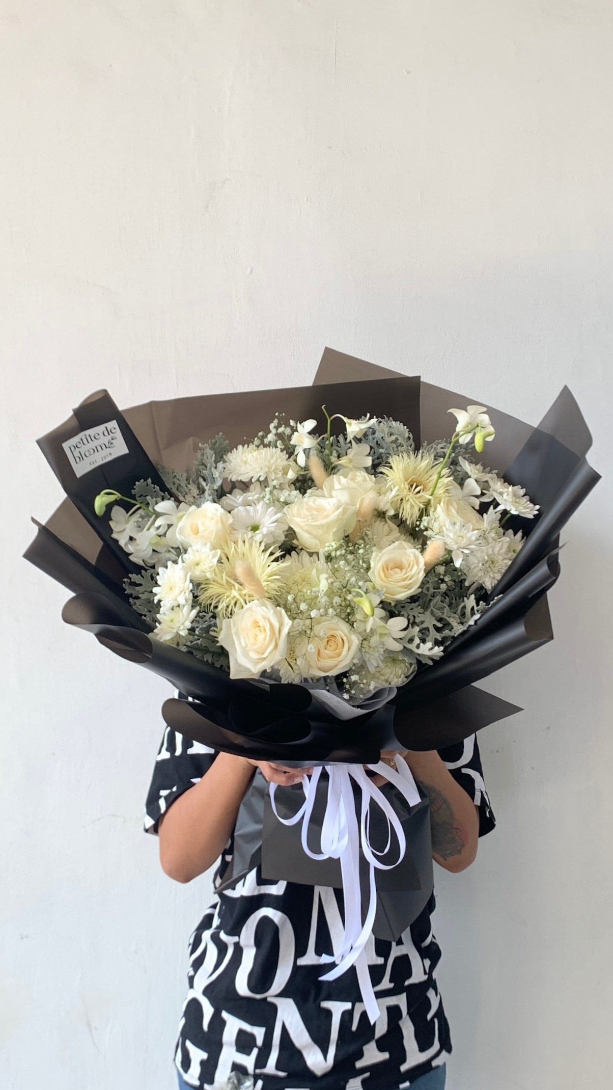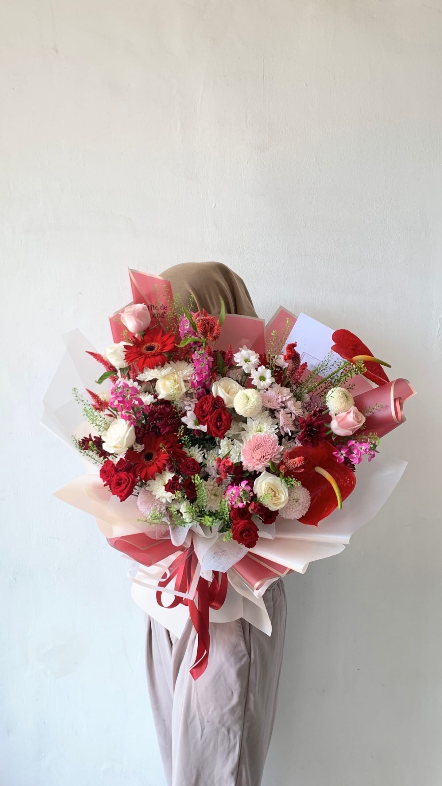 A perfectly balanced bouquet with just the right impact. Not too small, not too large — our medium-big arrangement is designed to make a lasting impression without being overwhelming. The photo is for reference only. You may choose your preferred color, and our expert florists will craft a unique arrangement using a mix of semi-imported and local blooms. While some secondary flowers may be substituted due to seasonal or market conditions, we always preserve your selected color, style, and theme. Substitutions will be of equal or greater value to ensure your bouquet remains beautiful and thoughtfully designed.