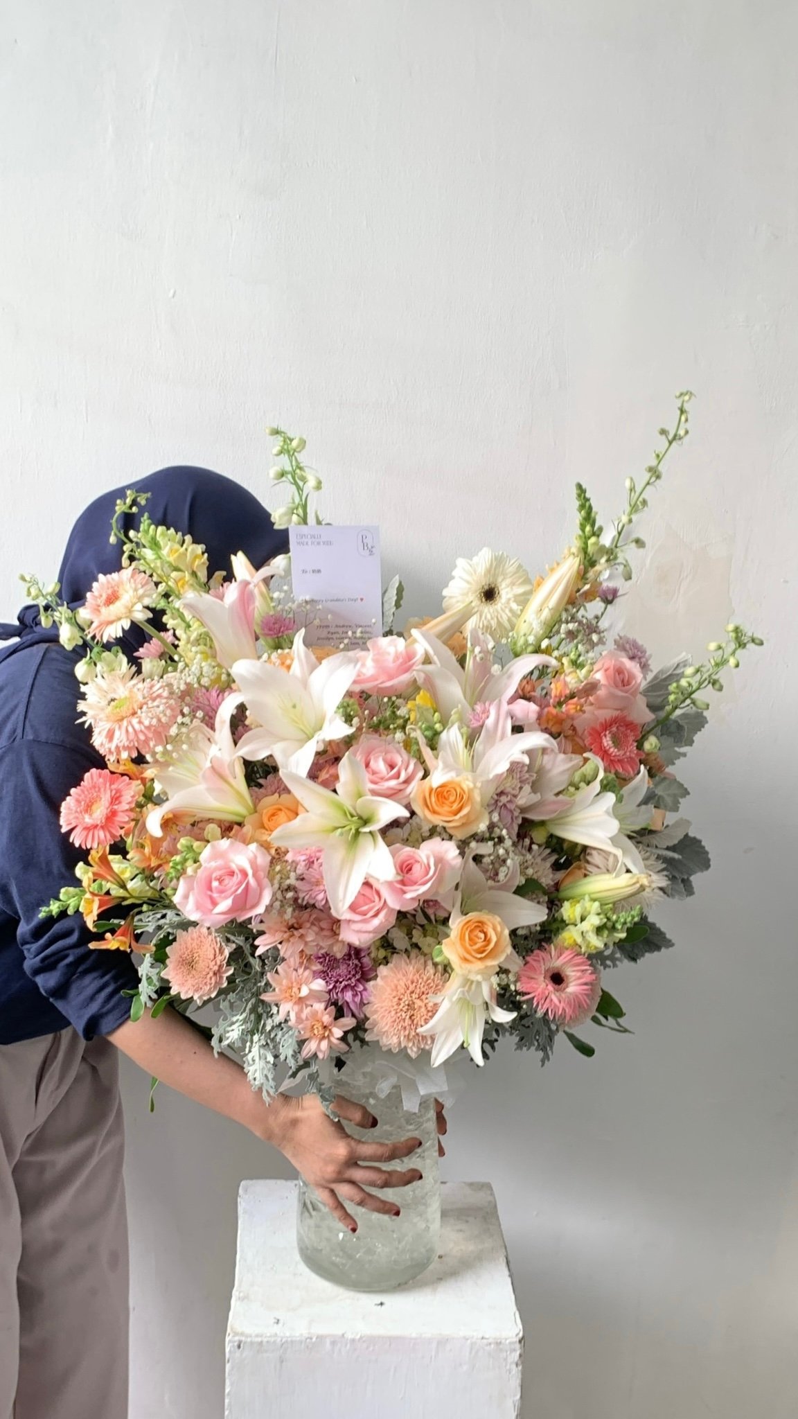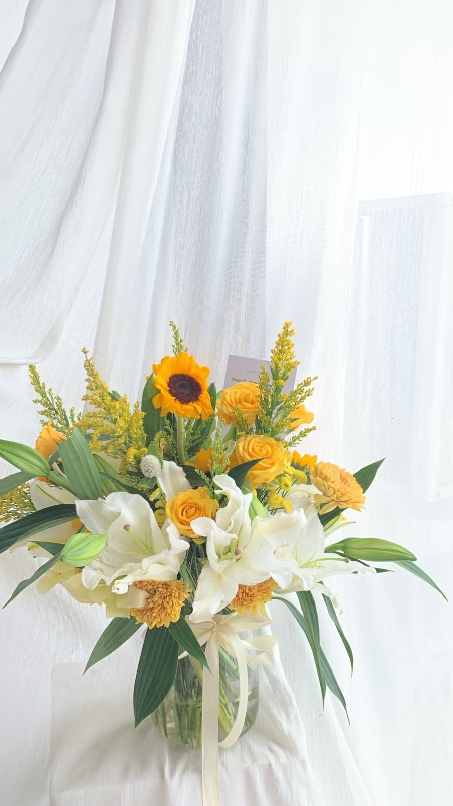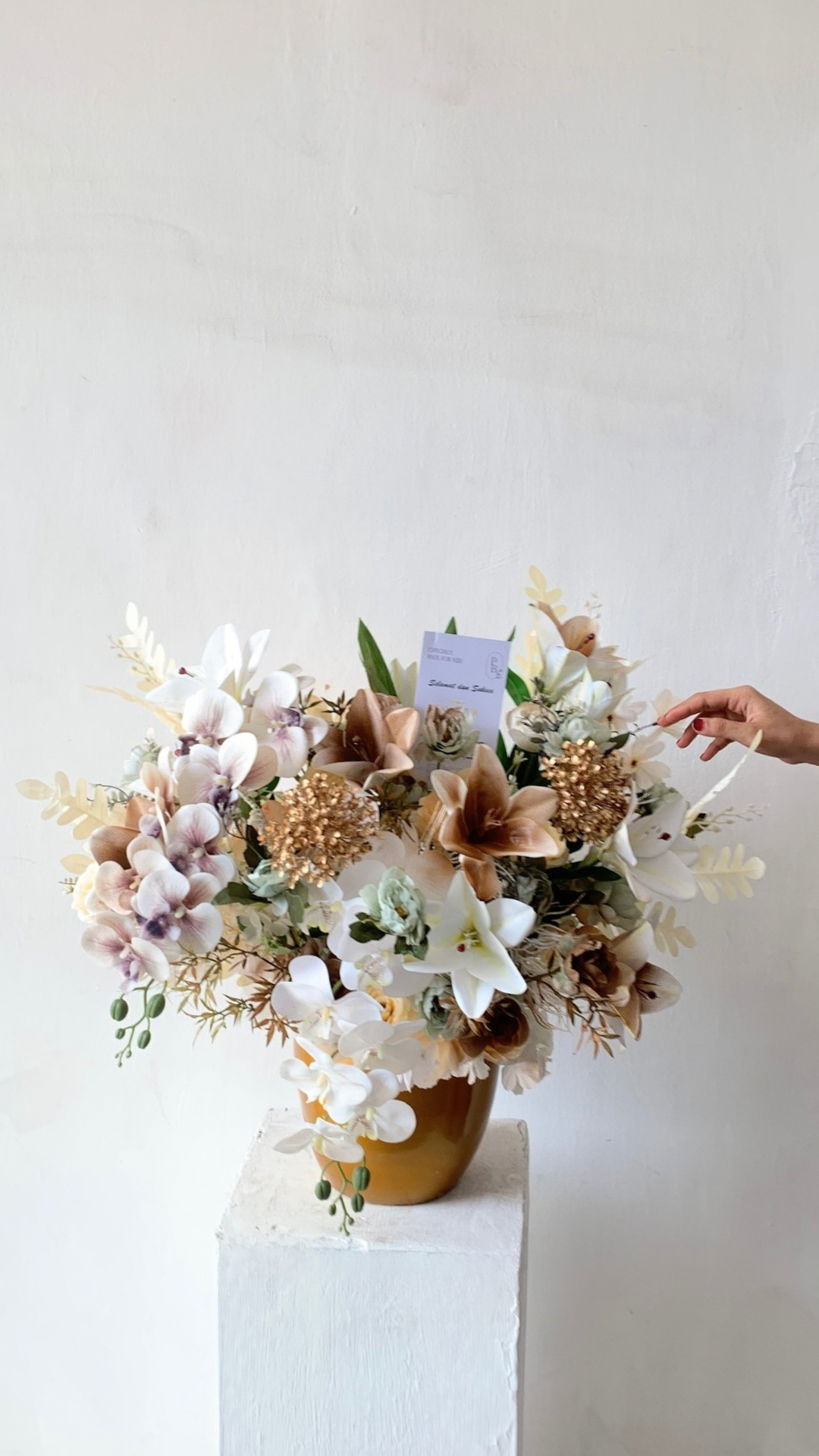 A stunning mix of fresh or premium artificial flowers, beautifully arranged in a stylish flower vase. Available in medium, medium-big, and big sizes — simply choose your favorite color, and we’ll take care of the rest, creating the perfect arrangement to brighten any space or occasion with lasting beauty.
