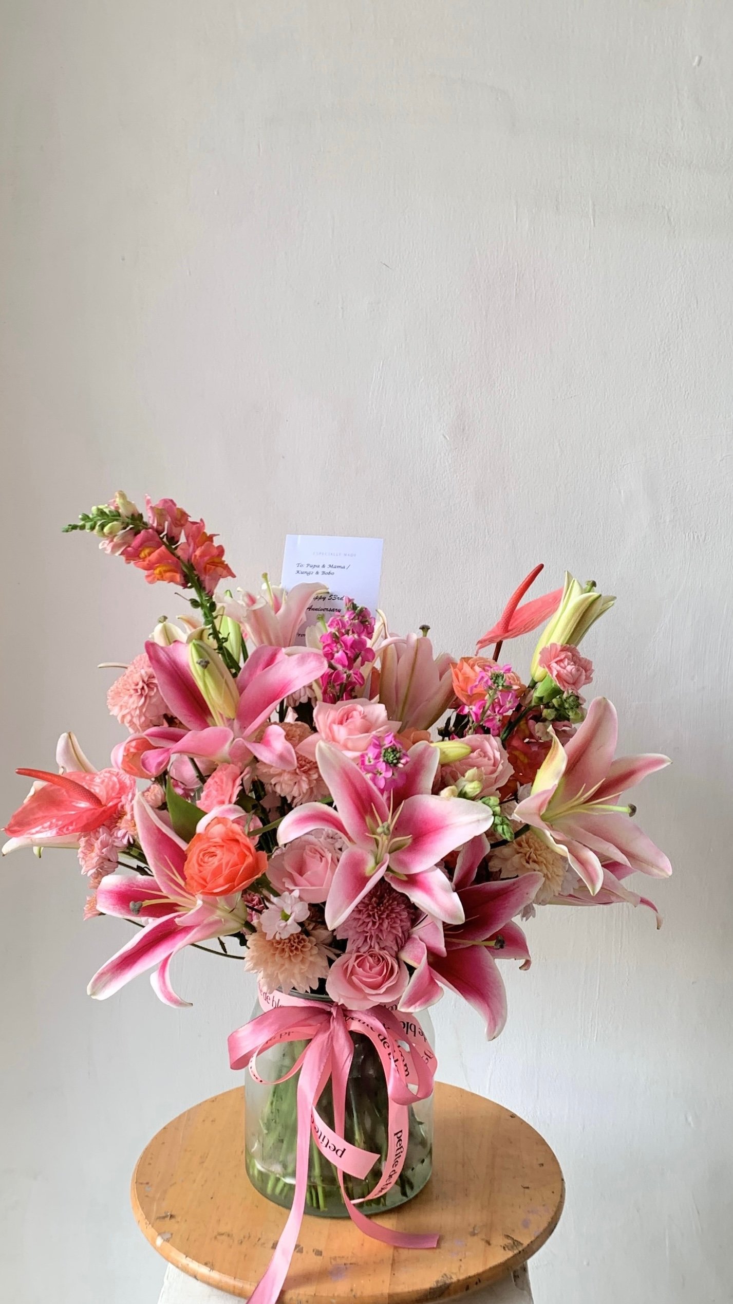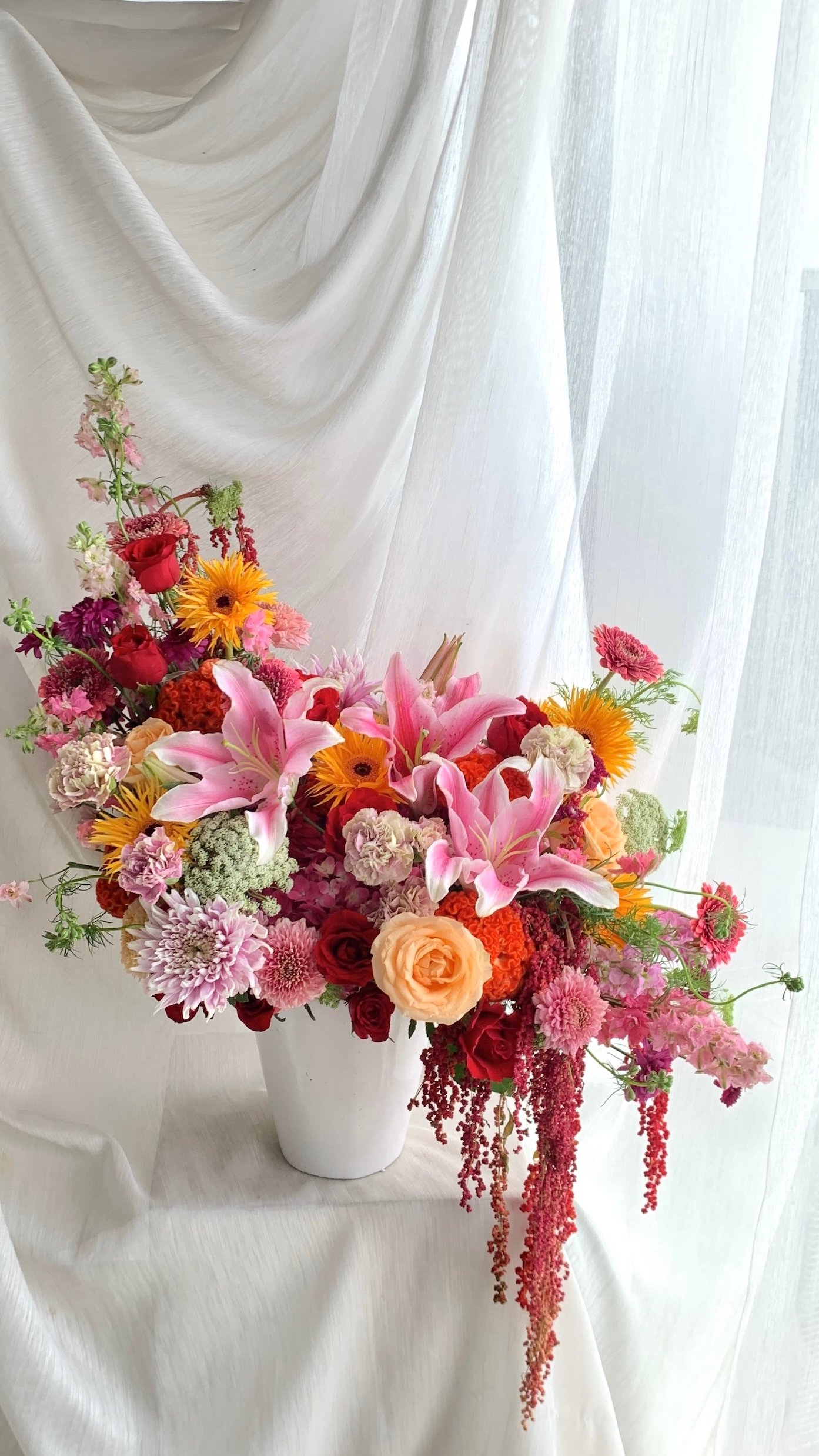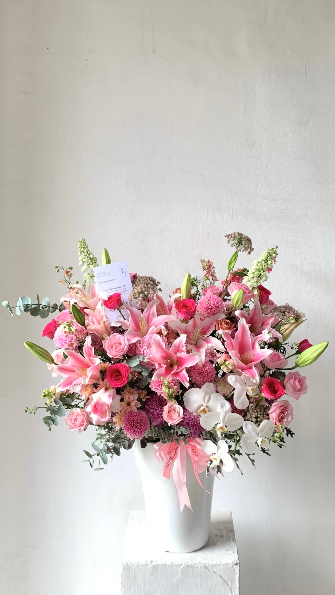A stunning mix of fresh or premium artificial flowers, beautifully arranged in a stylish flower vase. Available in medium, medium-big, and big sizes — simply choose your favorite color, and we’ll take care of the rest, creating the perfect arrangement to brighten any space or occasion with lasting beauty.